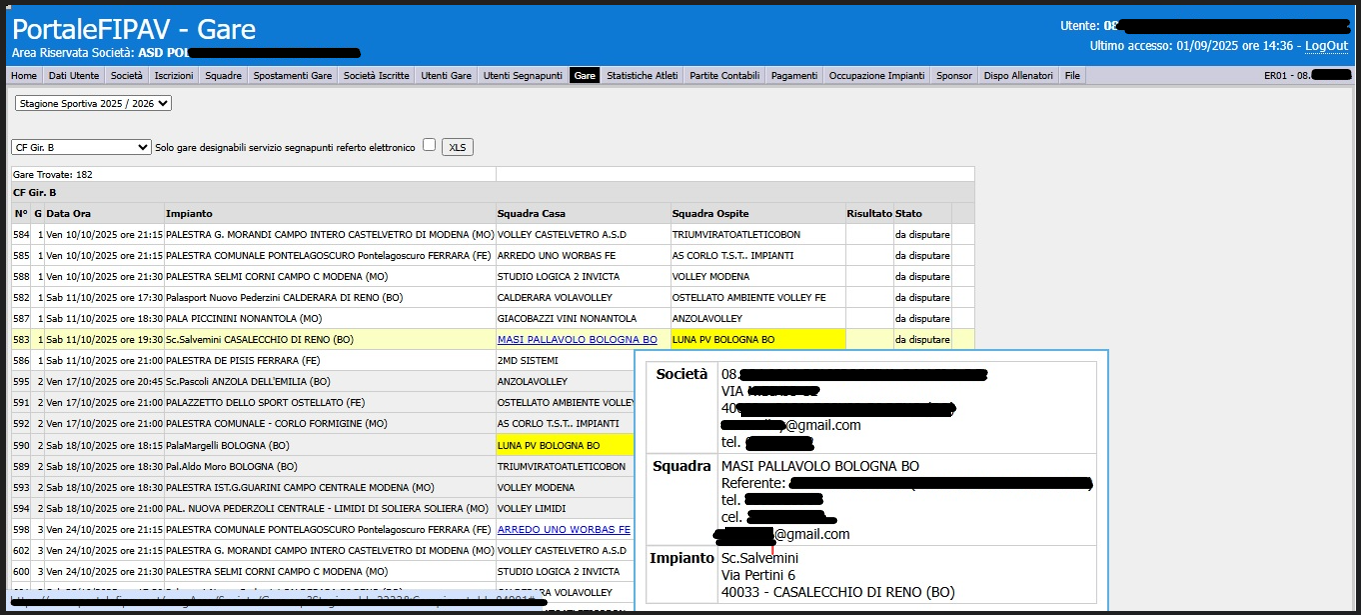 PortaleFipav NEWBIT - Esempio Accesso Rubrica - Referenti e Contatti 2025/2026 (agg. 3/10)