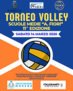 Sabato 14 Marzo, dalle 9:00 alle 13:00, presso la Palestra Don Milani a Casinalbo, la PGS Fides in collaborazione con il Comitato Territoriale FIPAV di Modena e il Comune di Formigine, organizza l'11° Torneo Volley Scuole Medie "A.Fiori".